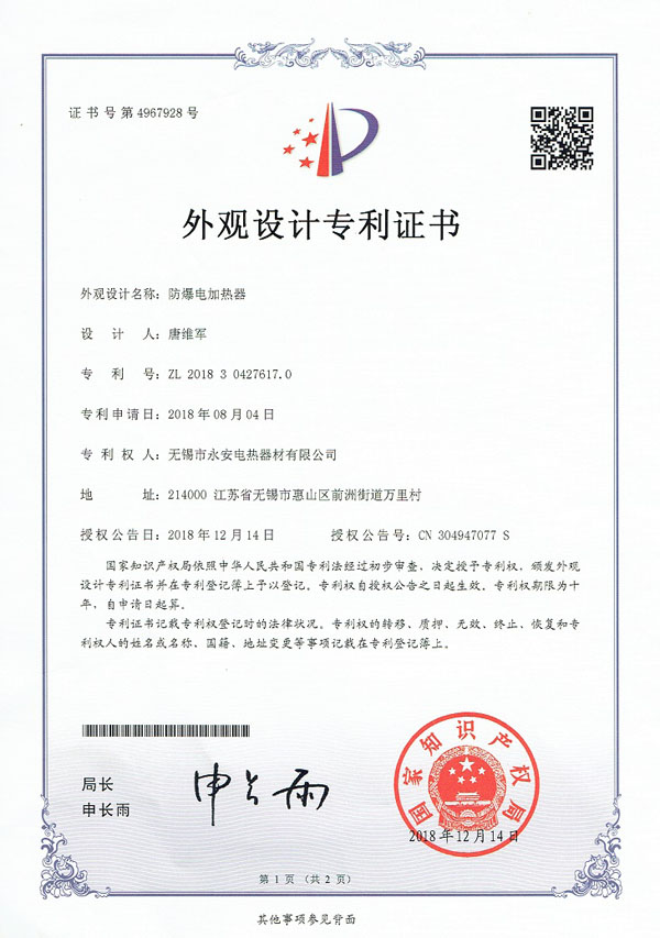 专利外观-防爆电加热器